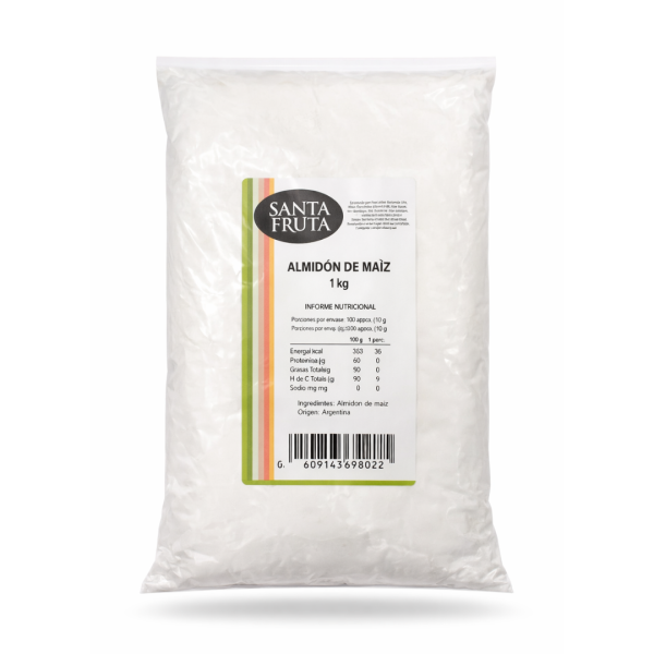 El Almidón de Maíz Santa Fruta 1 kg es un ingrediente esencial en la cocina, ideal para espesar, dar textura y mejorar diversas preparaciones dulces y saladas. Gracias a su gran pureza y calidad, es perfecto para preparar salsas, cremas, sopas, postres, masas y productos de repostería.