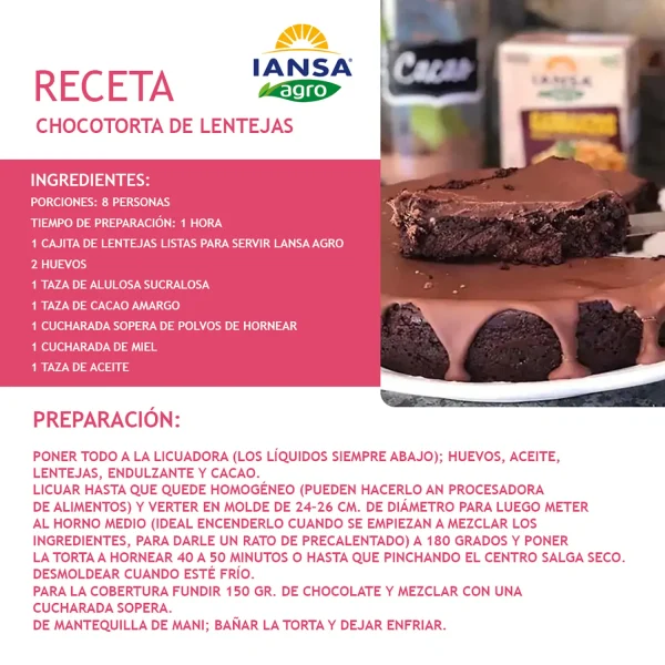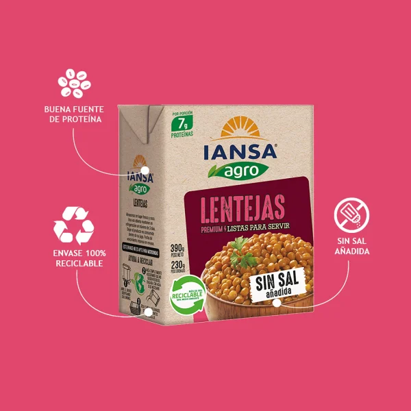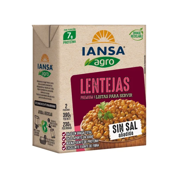 Las Lentejas Sin Sal Añadida Iansa Agro (390 g) son la opción práctica, saludable y deliciosa para quienes buscan una alimentación equilibrada. Están listas para servir, elaboradas con lentejas naturales y agua, sin saborizantes artificiales ni conservantes.