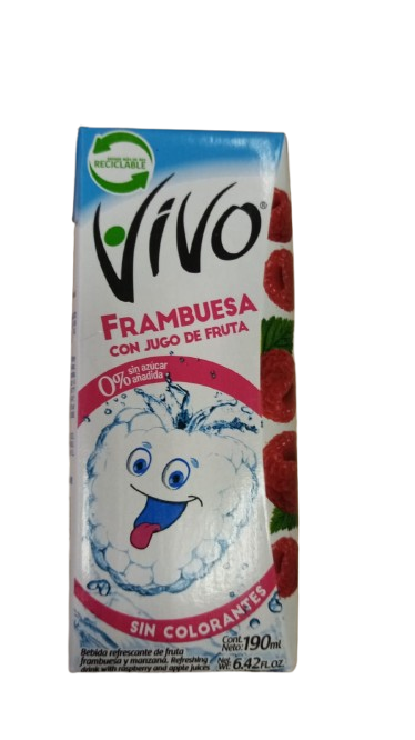 El Agua Saborizada Frambuesa de Vivo es una bebida refrescante presentada en una caja desechable de 190 ml. Con 0% azúcar añadida, es una opción saludable para quienes buscan hidratarse sin comprometer su bienestar. Esta bebida es libre de mariscos, peces, lactosa, soya, sulfitos y maní, lo que la convierte en una opción segura para diversas necesidades dietéticas. Sin colorantes artificiales, cada sorbo ofrece el auténtico sabor de la frambuesa, brindando una experiencia natural y refrescante. Ideal para acompañar tus colaciones o disfrutar sola, esta bebida es una elección consciente para quienes valoran la calidad en sus opciones de hidratación.